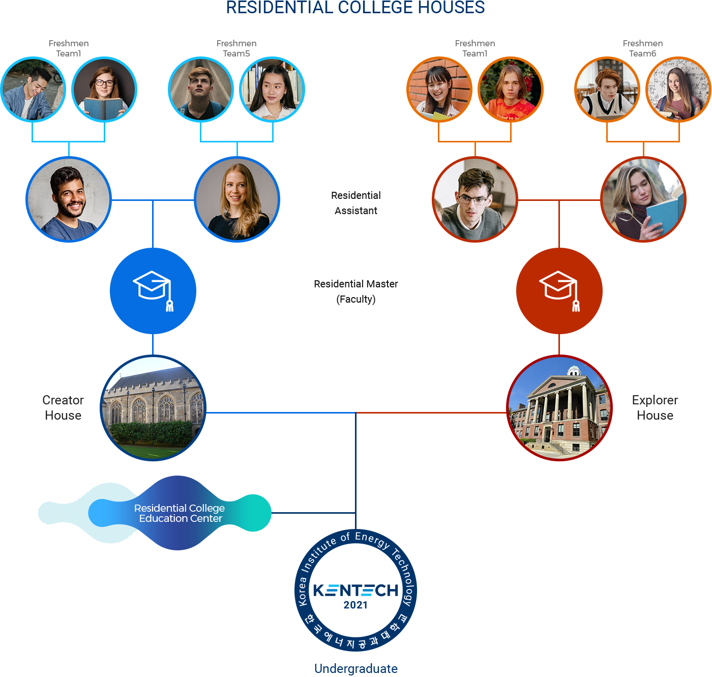 The Masters of houses, typically senior faculty members, take charge of RC houses and shape students' social and intellectual lives. Together with affiliated KENTECH faculty members, RC staff, fellows, graduate affiliates, and alumni, they work to make the RC Houses warm and supportive communities where students can explore and experience all that KENTECH and the city of Naju have to offer.